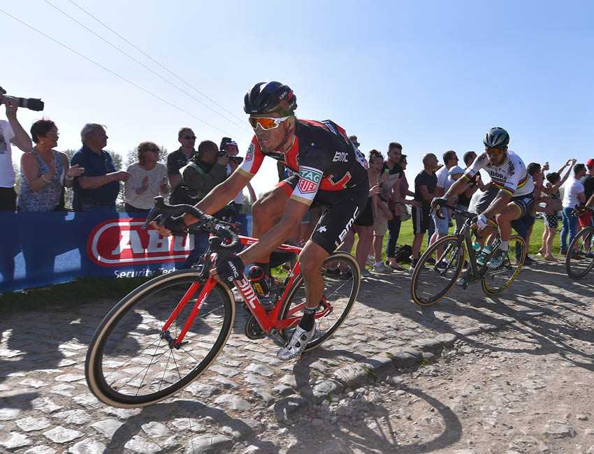 Van Avermaets Sieg bei Paris-Roubaix wird zu einem weiteren Schlüsselmoment für BMC. Kurz danach definiert die Teammachine SLR Disc neu, was mit Scheibenbremsen im Rennradsport möglich ist.